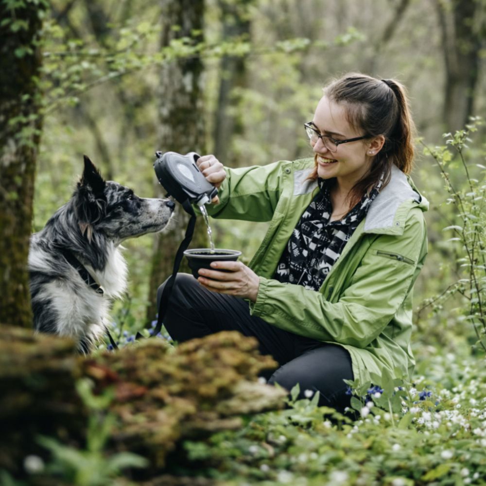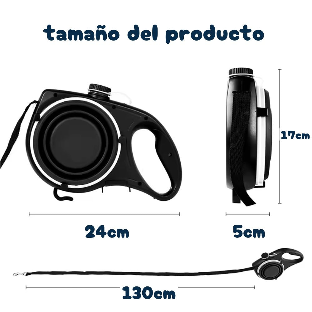 Paseíto es una correa retráctil con bebedero integrado, pensada para paseos prácticos, limpios y sin complicaciones.