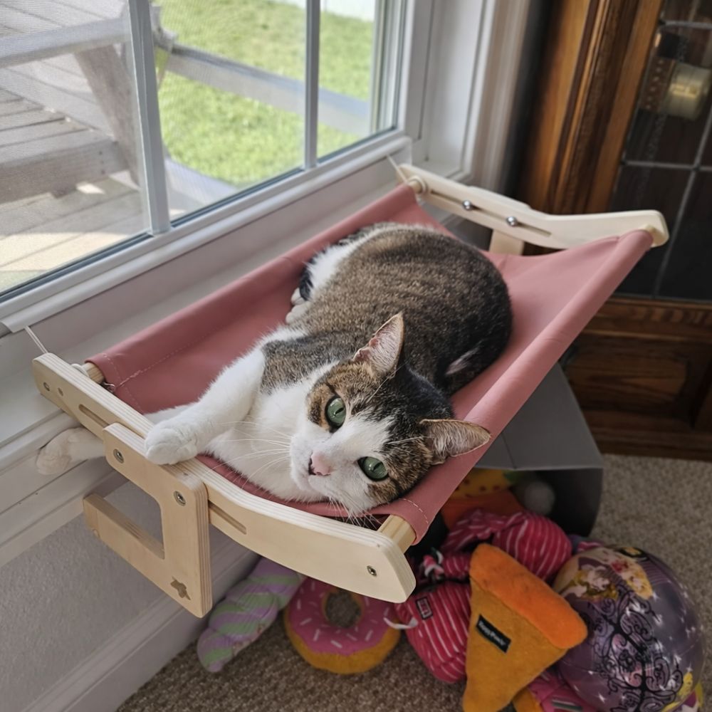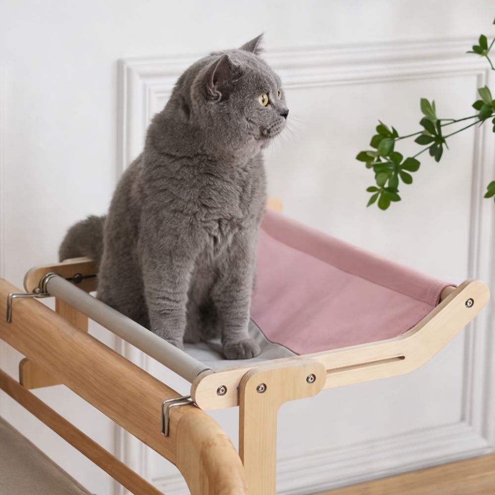 El tejido suave y cómodo se adapta al cuerpo del gato, creando un espacio elevado donde puede descansar, observar y sentirse protegido. A los gatos les encanta estar cerca de sus humanos, y esta red les permite hacerlo con total confort.
